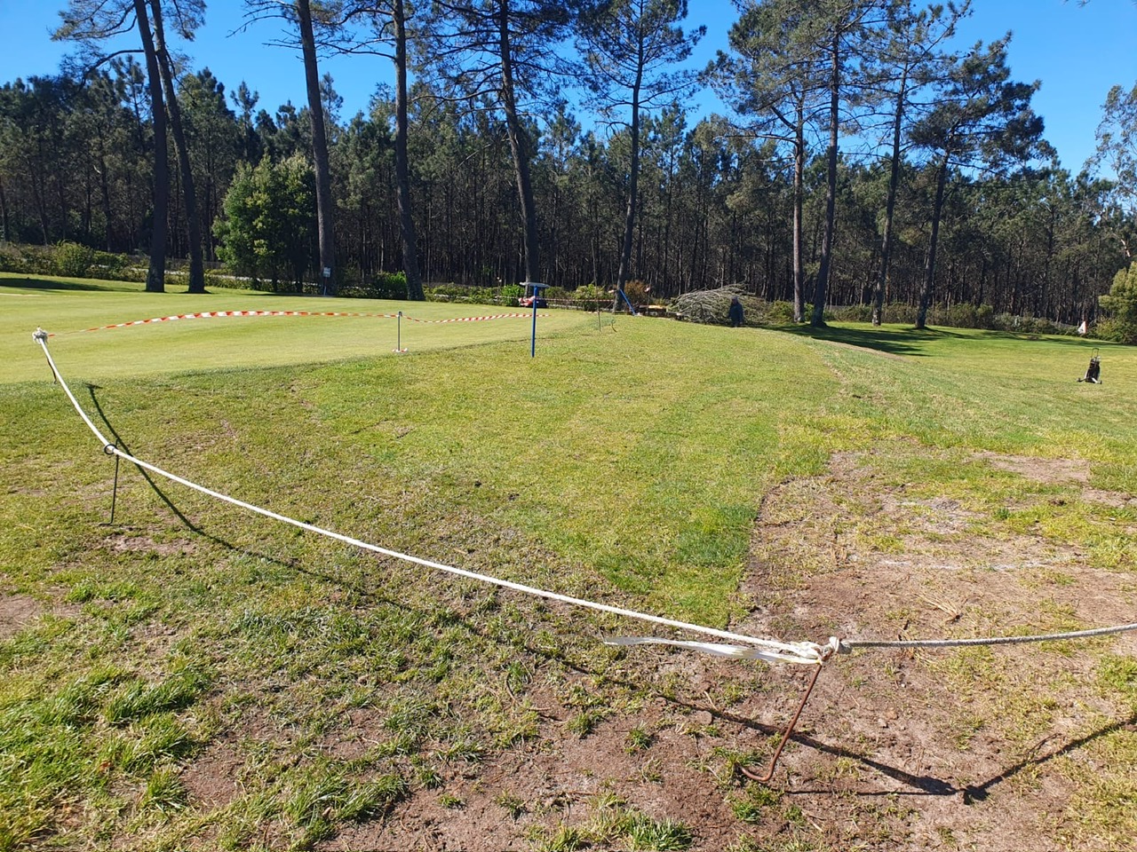 En breve ya se podrán retirar las cintas que protegen los tepés que se colocaron para restaurar el antegreen del hoyo 7 que fue reformado a finales de marzo y que aún permanece como «terreno en reparación».